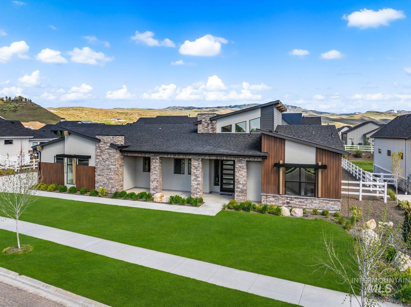 Experience single level living in the Eagle Foothills with an RV garage! This Lincoln home is located in the coveted Dry Creek Ranch community. Pass through the internal courtyard before stepping into a vaulted great room. Natural light floods through large windows lining the back wall, while a platform fireplace adds a striking focal point.