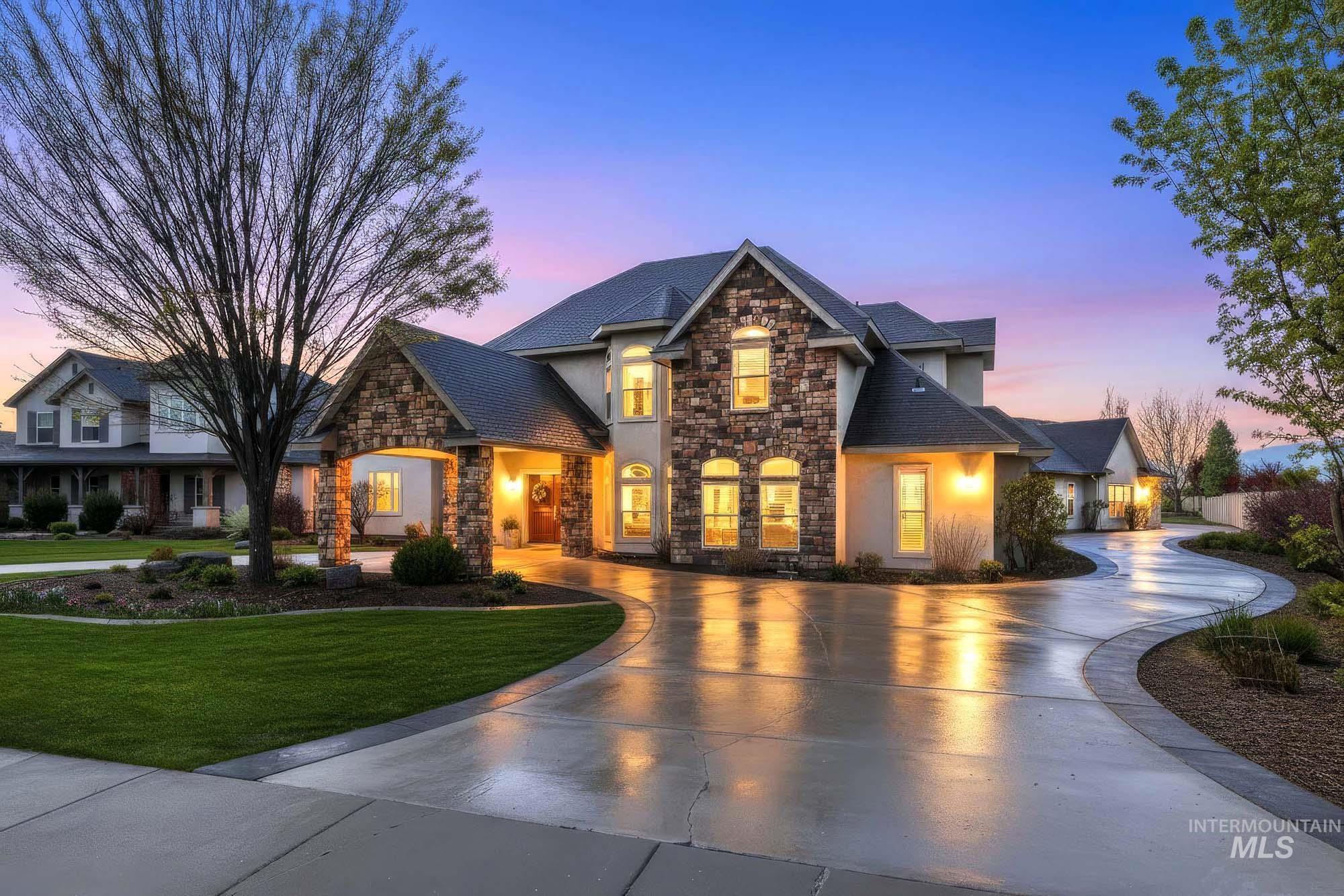 Experience luxury living on a full acre in southwest Meridian with convenient access to the freeway, shopping, and nearby schools like Gem Prep, as well as parks including Discovery Park. This 5,500+ sq ft home is set in a coveted neighborhood and offers five spacious bedrooms, each with walk-in closets, and six bathrooms.