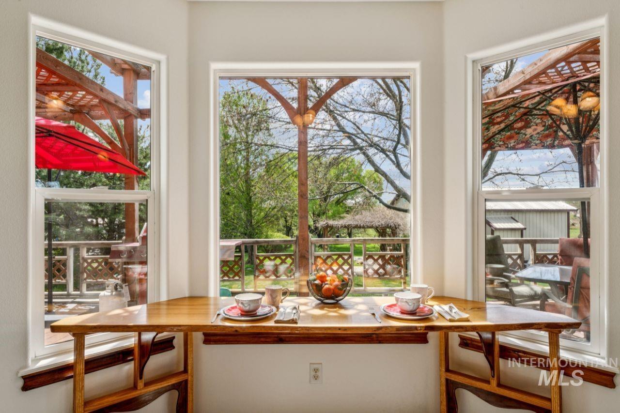 This single-level country home sits on 2.5 acres outside of Grangeville, Idaho, offering mountain views, sunsets, and no CC&Rs. The well-maintained interior features a great room design, a split-bedroom floor plan with three bedrooms and a dedicated office. The primary suite includes a walk-in closet and an ensuite bathroom with a jetted tub.